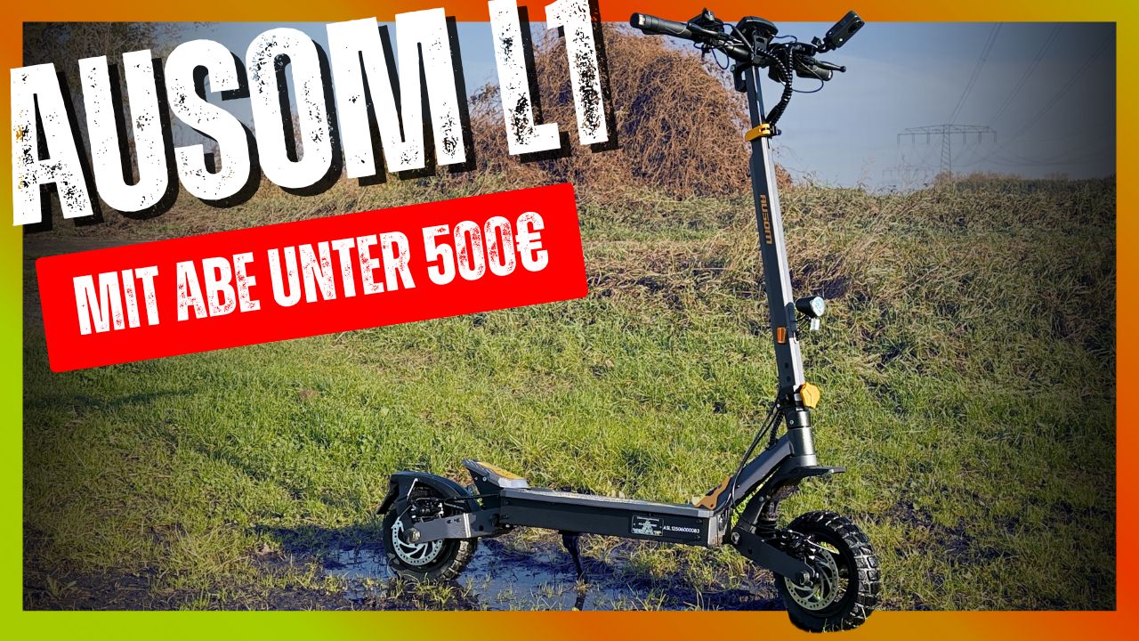 Ich muss ehrlich sagen: Als ich das Datenblatt des Ausom L1 ABE zum ersten Mal gelesen habe, dachte ich mir – das kann eigentlich nicht stimmen. Ein vollgefederter E-Scooter mit Straßenzulassung (ABE), 930 W Spitzenleistung, 70 km Reichweite, NFC-Entsperrung und 15,6 Ah Akku – und das Ganze für unter 500 Euro? Normalerweise ist das die Preisklasse, in der man Billig-Scooter ohne Federung, mit 7,5 Ah Akku und Plastikbremsen bekommt. Doch der L1 will alles anders machen.